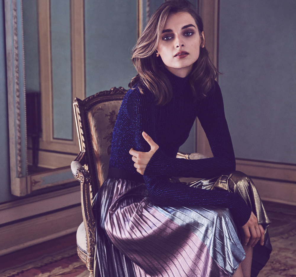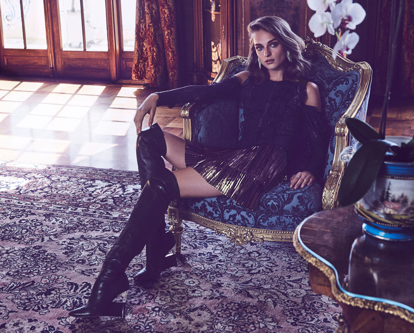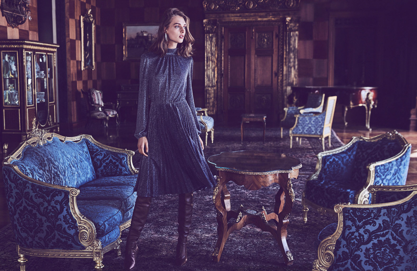 Η Daga Ziober φωτογραφίζεται σαν μοντέλο άλλης εποχής. Σε φόντο αριστοκρατικό και με ανάλογα vibes ποζάρει στον φακό του fashion photographer David Roemer για την νέα συλλογή του brand BCBG Holiday Collection.