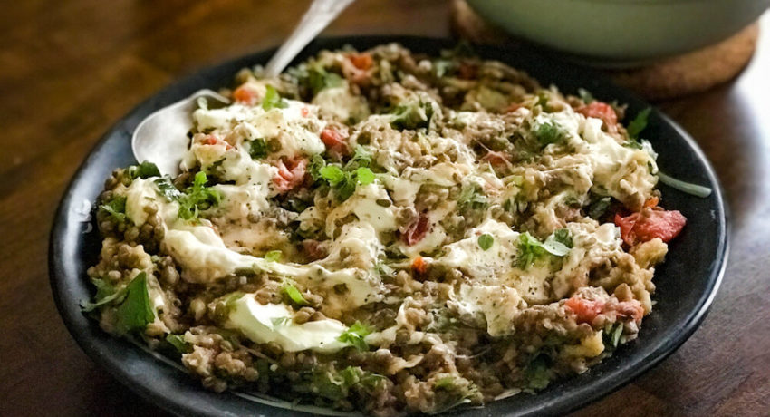 Σαλάτα με φακές, μελιτζάνα και στραγγιστό γιαούρτι