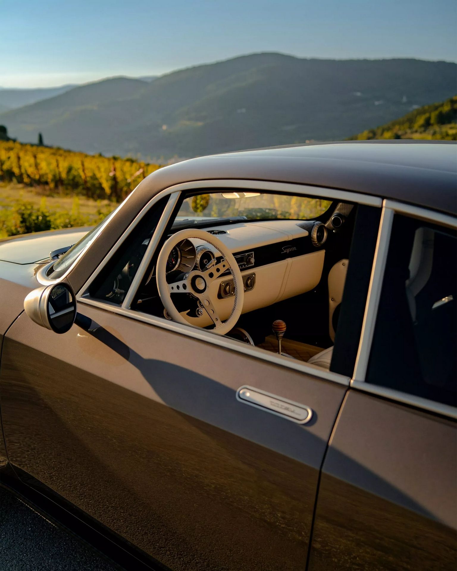 Η Totem Automobili ξαναγράφει την έννοια του restomod με την GT Super “Farina”, μια δημιουργία που παντρεύει την ψυχή της δεκαετίας του ’70 με την τεχνολογία του σήμερα. Η «Farina», βαμμένη στο ιδιαίτερο μεταλλικό καφέ Luci del Bosco («Φωτισμοί του Δάσους»), αποπνέει διακριτική πολυτέλεια μέσα από χρυσές λεπτομέρειες και χειροποίητη φινέτσα.