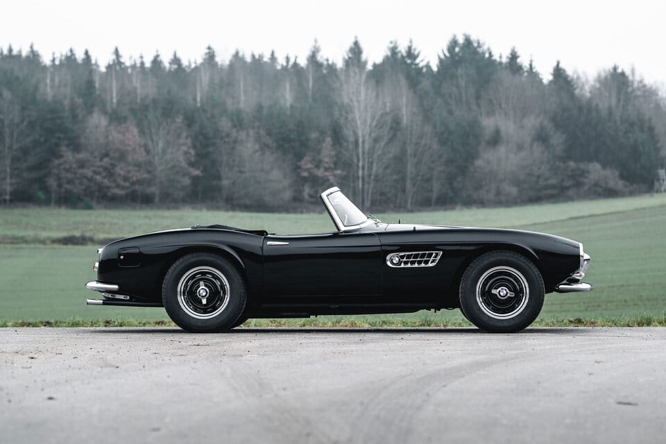 Possibly the most desirable BMW ever built will be going to auction in Paris. This 1958 507 Roadster Series II left the BMW factory in May 1958, it was first displayed at the BMW Pavillion in Munich before crossing the Atlantic to Havana, Cuba in June of the same year. The car’s history is unknown before it returned to Germany and was acquired by the seller in 1988. The car then spent six years undergoing a restoration with a total bill of 560,000 Deutsche Mark. Originally delivered in ivory white, the car now wears black with matching center-lock Rudge wheels, a rare hardtop, and grey interior. The current motor is the correct 3.2-liter V8, with the original mill included with the sale.