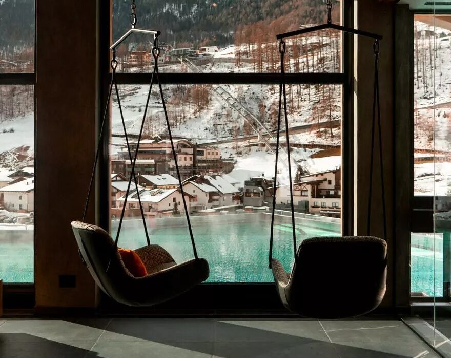 Η εμπειρία ευεξίας είναι εντυπωσιακή: εκτός από το παραδοσιακό σπα με σάουνες και εσωτερική πισίνα, υπάρχει το Summit Spa στον τελευταίο όροφο με εξωτερική infinity πισίνα και θέα στις χιονισμένες κορυφές – ιδανικό για χαλάρωση μετά από μια μέρα στις πίστες.