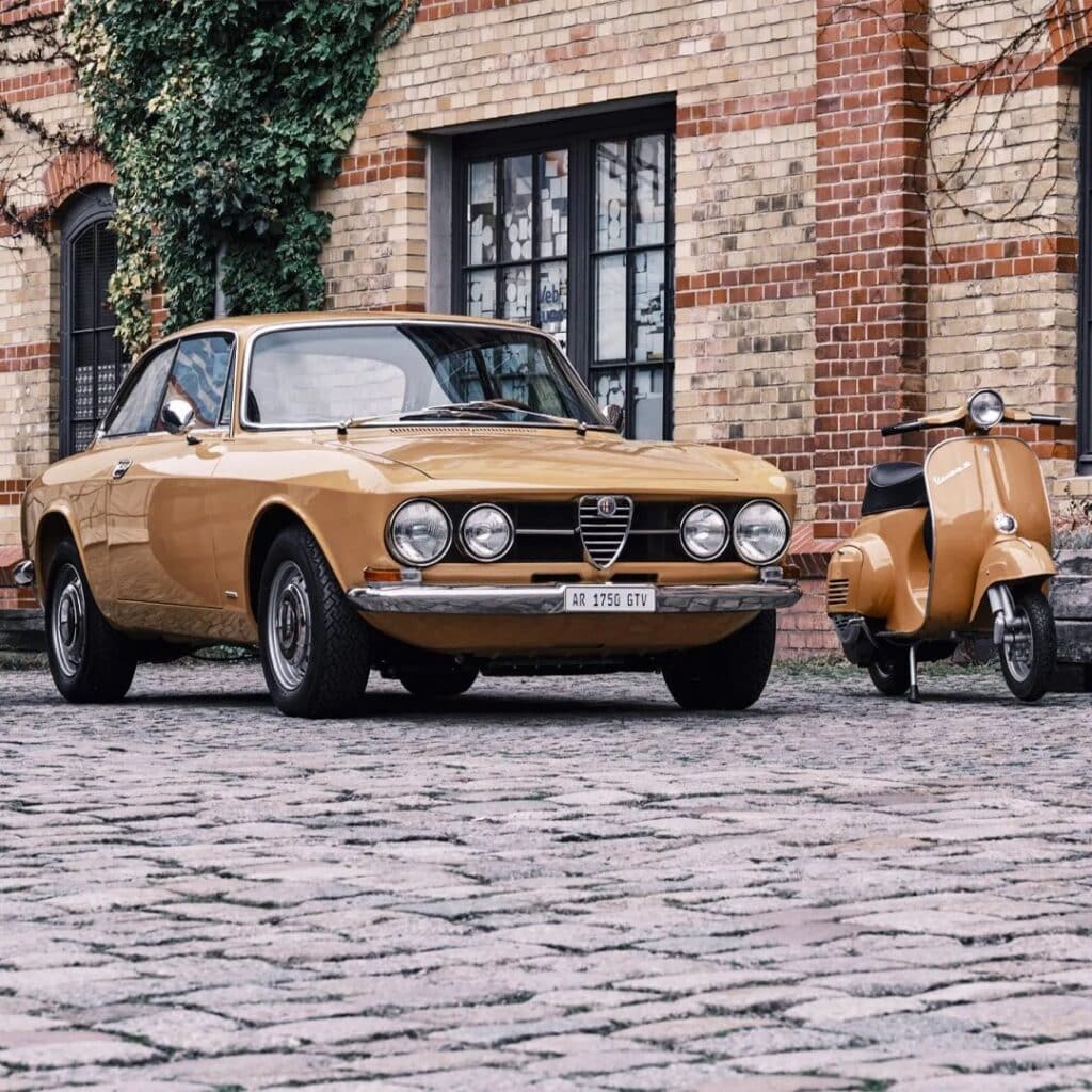 Το δίδυμο της 1968 Alfa Romeo GTV 1750 και της 1967 Vespa 50N που εμφανίζεται σε αυτή την προσφορά αποτίει έναν φόρο τιμής στην ιταλική κουλτούρα της αυτοκίνησης. Πρόκειται όχι απλώς για ένα αυτοκίνητο και μια μοτοσυκλέτα, αλλά για μια προσεκτικά επιμελημένη στιγμή που αιχμαλωτίζει το πνεύμα μιας ολόκληρης εποχής. Το αυτοκίνητο, αρχικά προοριζόμενο για την αγορά της Γερμανίας, έχει υποβληθεί σε μια πολυετή και σχολαστική ανακατασκευή η οποία ολοκληρώθηκε το 2024. Βαμμένο στο εργοστασιακό του χρώμα Giallo Ocra με εσωτερικό από μαύρο δέρμα Nero Skai, το GTV παρουσιάζει βάθος και λεπτομέρεια που αντανακλούν την πλήρη αποσυναρμολόγηση και επανακατασκευή του. Ο τετρακύλινδρος κινητήρας 1.779 cc με διπλούς καρμπυρατέρ Weber έχει ανανεωθεί και συνδυάζεται με σύγχρονη προγραμματιζόμενη ανάφλεξη για καλύτερη λειτουργία στο δρόμο, προσφέροντας την αίσθηση που πρέπει να έχει ένα κλασικό Alfa: άμεση, μηχανική και γεμάτη χαρακτήρα. Παράλληλα, οι προσεκτικά επιλεγμένες αναβαθμίσεις, όπως η ανάρτηση Bilstein και οι αεριζόμενοι εμπρόσθιοι δίσκοι φρένων, ενισχύουν την αυτοπεποίθηση χωρίς να αμβλύνουν την αυθεντικότητα του μοντέλου. Στο εσωτερικό, οι χαρακτηριστικές «flying buttress» θέσεις, το τιμόνι με ξύλινη στεφάνη και τα όργανα Jaeger ισορροπούν τέλεια μεταξύ σπορ χαρακτήρα και κομψότητας.