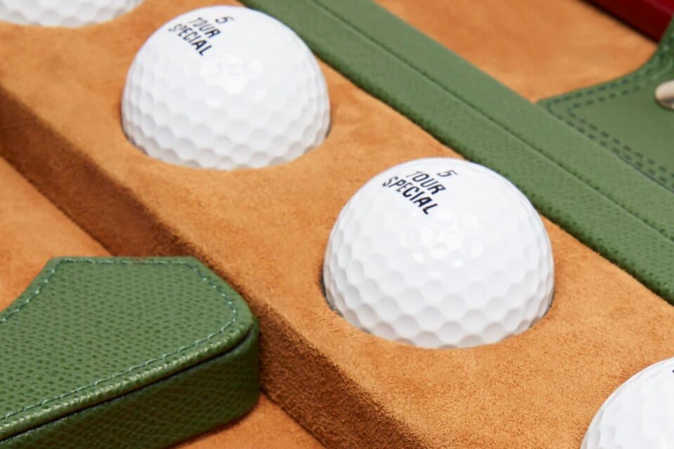 Το δερμάτινο golf travel set της Renzo Romagnoli αποτελεί μια refined εμπειρία που μετατρέπει το παιχνίδι σε lifestyle statement, ακόμα και εν κινήσει.