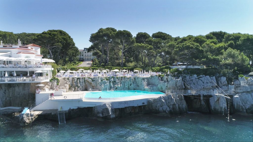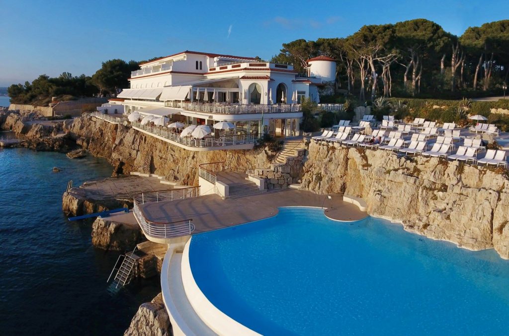 Ο Ιούλιος Βερν και ο Ανατόλ Φρανς έμειναν εκεί στα τέλη του 19ου αιώνος, όπως υπο- δεικνύει μια αναμνηστική πλάκα στον πευκώνα. Στις αρχές του 20ού αιώνος, Ρώσοι και Άγγλοι αριστοκράτες υιοθετούν γενικώς την Κυανή Ακτή και ειδικώς το «Eden Roc», όπως έχει μετονομασθεί λόγω της τοποθεσίας του. Από τα δωμάτια με θέα στη θάλασσα έχεις την εντύπωση ότι ο βράχος είναι σκάφος και πλέει.