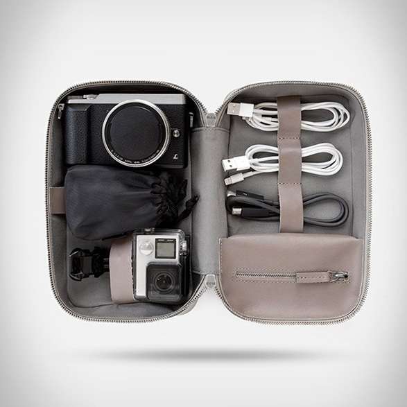 Το επονομαζόμενο Tech Dopp Kit δημιουργήθηκε από την εταιρεία “This Is Ground” οι οποίοι είχαν στο μυαλό τους να δημιουργήσουν ένα stylish kit κατάλληλο για να οργανώνει κανείς όλα τα gadgets που χρειάζεται να μεταφέρει μαζί του στα ταξίδια. Διοργανώνοντας ένα ταξίδι, σίγουρα δεν θέλεις να ξεχάσεις φορτιστές, ακουστικά και όσα ακόμη μικρά gadgest θα χρειαστείς μαζί σου. Οι συγκεκριμένες πολυτελείς θήκες είναι οι κατάλληλες για να μεταφέρετε όσα χρειάζεστε, έχοντας οργάνωση αλλά και στυλ. Μπορείτε όμως να φυλάξετε και όλα τα σημαντικά σας έγγραφα και έτσι ότι σας είναι απαραίτητο σε ένα ταξίδι θα το μεταφέρετε με ασφάλεια. Κατασκευασμένο από δέρμα εξαιρετικής ποιότητας, με τρία διαθέσιμα χρώματα, ανοιχτό καφέ, γκρι και μαύρο και σε δυο διαφορετικά μεγέθη.