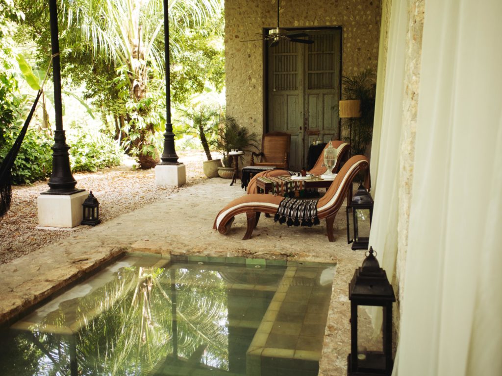 Βρίσκεται στην καρδιά της πυκνής ζούγκλας του Γιουκατάν στο Μεξικό, στην ακτή μιας γαλήνιας λιμνοθάλασσας, ένα μικρό καταφύγιο με εξωτερικούς ασβεστολιθικούς τοίχους που εναρμονίζονται τέλεια με το φυσικό περιβάλλον. Μια πέτρινη σκάλα υψώνεται μπροστά από κάθε έναν από τους δύο πύργους, που προσομοιάζουν ως προς την αρχιτεκτονική στους κοντινούς ναούς των Μάγια.