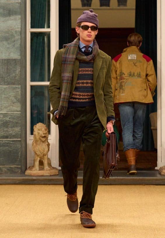 Η συλλογή συνδύασε δύο από τις πιο εμβληματικές γραμμές του brand, την Polo Ralph Lauren και την Purple Label, παρουσιάζοντας ένα ταξίδι μέσα από τους κώδικες που έχουν καθορίσει την αισθητική του σχεδιαστή για πάνω από έξι δεκαετίες. Από την «νοσταλγία των 90s» με fleece, καμουφλάζ και χαλαρό denim, μέχρι τις πιο κομψές Ivy League επιρροές, η επίδειξη έδειξε πόσο βαθιά έχει επηρεάσει ο Lauren το σύγχρονο ανδρικό στιλ.