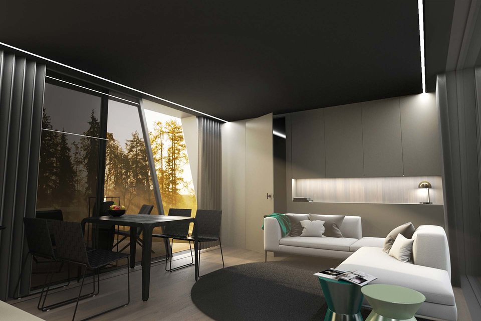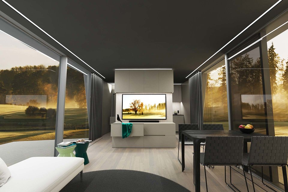 Η upgrated τεχνολογία δεν έκλεψε τίποτα από το design αφού το εσωτερικό της “σκηνής” έχει άψογη μινιμαλιστική αισθητική βασισμένη στο ξύλο, το γυαλί και το μέταλλο. Όλα τα έπιπλα είναι ήδη ενσωματωμένα κι έτσι το μόνο που χρειάζεται να κάνεις εσύ είναι να επιλέξει τοποθεσία.