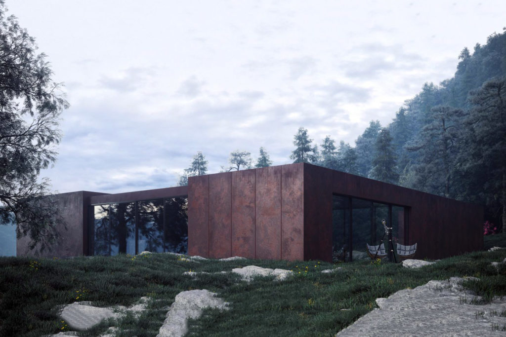 Χτισμένο σε μεγάλο υψόμετρο στα βουνά της Ουκρανίας, το Rose House πήρε την ονομασία του από το χρώμα της πατίνας στην πρόσοψή του. Ο ξενώνας κατασκευάστηκε από σκυρόδεμα και γυαλί, ενώ διαθέτει και πισίνα. Το εσωτερικό του είναι άνετο με ενιαίους χώρους σε υπνοδωμάτιο, καθιστικό και τραπεζαρία. Τα μεγάλα παράθυρα που ξεκινούν από το δάπεδο και φτάνουν ως την οροφή επιτρέπουν τον φυσικό φωτισμό καθ’ όλη τη διάρκεια της ημέρας και οι τρεις ξεχωριστοί υπαίθριοι χώροι βοηθούν στην ομαλή μετάβαση από τον εσωτερικό στον εξωτερικό χώρο.