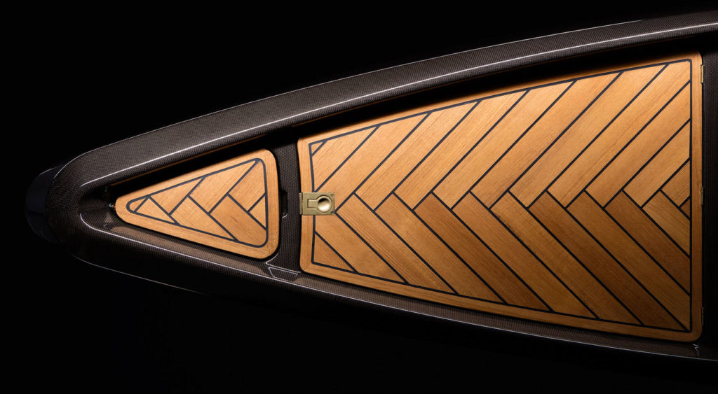 H ιδέα της κατασκευής του βασίστηκε στο ότι ένα πολυτελές αντικείμενο είναι επαρκές από μόνο του, δεν υπάρχει μόνο για να λύσει ένα πρακτικό πρόβλημα, αλλά δικαιολογείται και μόνο από την οπτική του πρόταση. Ο λόγος για το κανό Monocoque Paddle, το οποίο συνδυάζει την παραδοσιακή χειροτεχνία, τις εξαιρετικές τεχνικές διαδικασίες και τα υλικά. Το κύτος είναι κατασκευασμένο από συνδυασμό ινών άνθρακα από χαλκό και κλασικού ξύλου τικ. Το χάλκινο σύρμα δίνει βάθος στην υφή και κάτω από το φως του ήλιου κάνει τις επιφάνειες ζωντανές, μιμούμενο τον λαμπερό ήλιο που αντανακλά στο νερό. Ένα κανό που είναι ποιητικό στην κατασκευή του, αλλά τεχνικά ισχυρό, ανθεκτικό και ελαφρύ. Η επιφάνεια τικ είναι τοποθετημένη στο χέρι από το Maestri d’Ascia, ένα από τα παλαιότερα και πιο σεβαστά εργαστήρια τεχνιτών στη Γένοβα. Το κανό της Borromeo de Silva είναι αναμφίβολα μοναδικό.