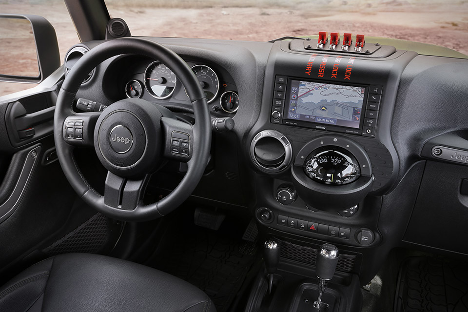 Κάτι σαν φόρος τιμής στα στρατιωτικά οχήματα είναι το Jeep Crew Chief 715. Χτισμένο πάνω στο ανοικτό Wrangler Unlimited, διαθέτει εμπρόσθιο τμήμα και προφυλακτήρες από χάλυβα, ζάντες beadlock 20-ιντσών και 40-ιντσών στρατιωτικά ελαστικά. Το στρατιωτικό θέμα ολοκληρώνεται με off-road rock rails, εποχούμενο σύστημα αεροσυμπιεστή, δερμάτινα καθίσματα bucket, μια πυξίδα πλοήγησης, στρατιωτικής έμπνευσης διακόπτες, και ένα ζευγάρι βαρούλκα για να ξεπεραστούν οι πιο δύσκολες διαδρομές.
