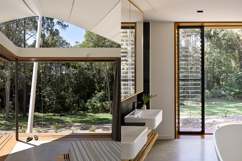 Είναι και κάποιοι άνθρωποι που όταν λένε πως θέλουν να ζουν δίπλα στη φύση το εννοούν. Το επονομαζόμενο «Tent House» βρίσκεται μόλις 20′ από την ακτή Sunshine, στο Queensland της Αυστραλίας και αποτελεί μια κατοικία στην οποία μπορεί να ζήσει κανείς υπό τις σωστές συνθήκες όλες τις εποχές του χρόνου. Έχει τρία υπνοδωμάτια, σαλόνι, τραπεζαρία και κουζίνα ενώ χάρη στους συρόμενους τοίχους-παράθυρα το εσωτερικό μπορεί να ανοίξει και να κλείσει εντελώς. Όπως βλέπετε και στις εικόνες η έλλειψη τοίχων επιτρέπει στον ιδιοκτήτη να απολαμβάνει την θέα του δάσους και του κήπου. Το εσωτερικό design από την άλλη είναι minimal καθώς με τέτοια φυσική ομορφιά δεν χρειάζεσαι και πολλά για την διακόσμηση, αρκεί να κοιτάξεις έξω από τα παράθυρα.