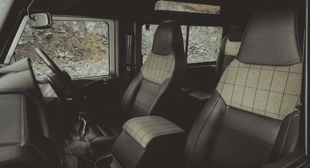 Στο εσωτερικό, οι επιβάτες απολαμβάνουν δερμάτινα καθίσματα με ενθέσεις από χειροποίητο tweed της Islay Woollen Mill, ενώ το δρύινο φινίρισμα στο χώρο φόρτωσης προσδίδει μια αίσθηση πολυτέλειας. Ιδιαίτερη αναφορά αξίζει το removable tray από δρύινο ξύλο βαρελιού ουίσκι από την Kilchoman Distillery.